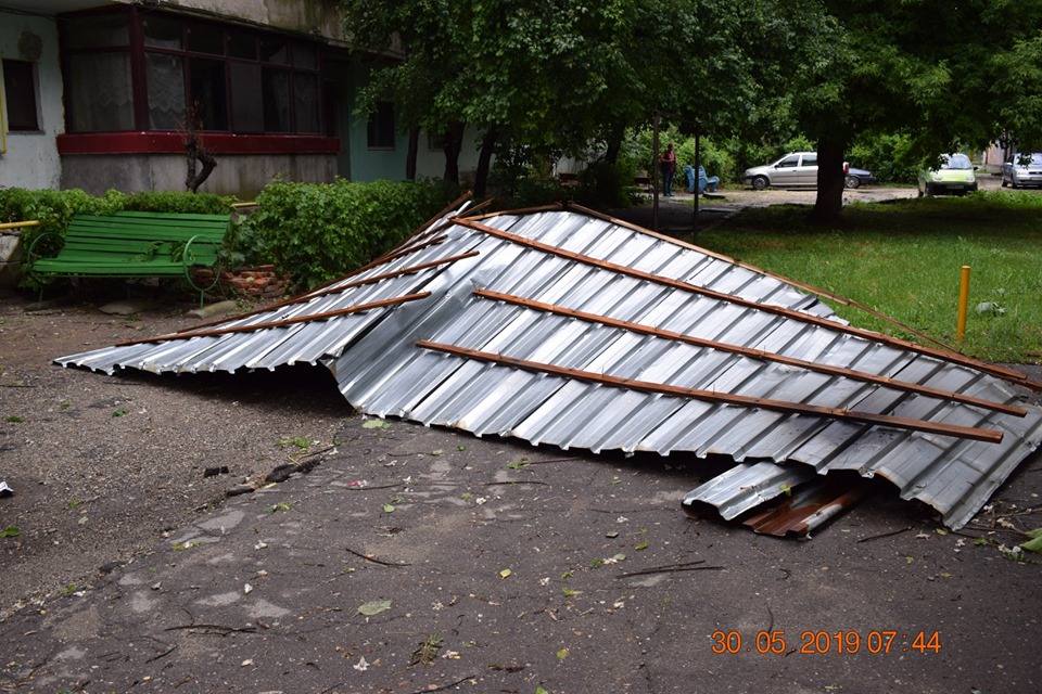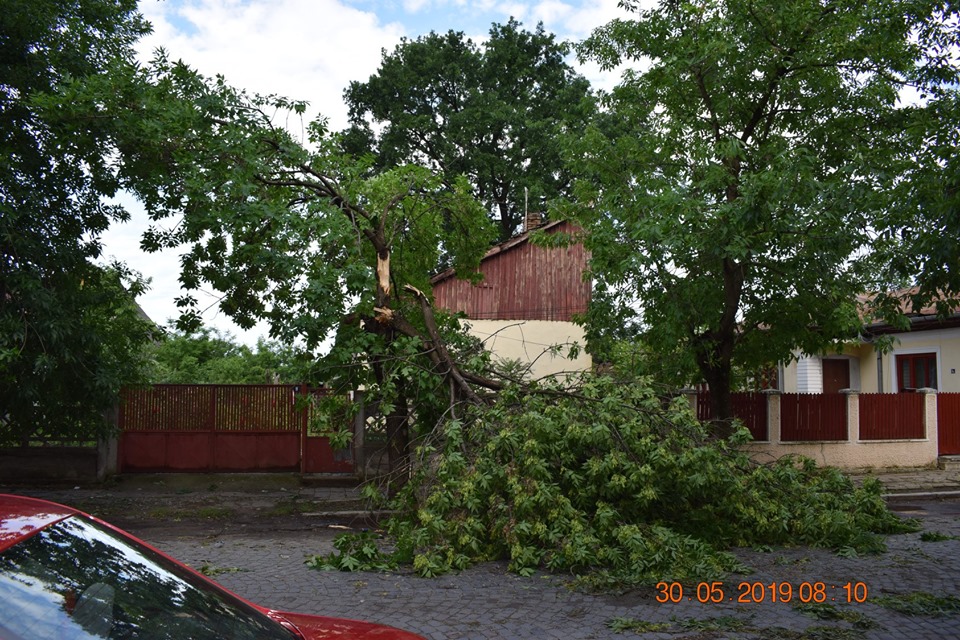 La ora actuala sunt peste 50 de copaci rupti sau scosi din radacina, 10 stalpi de curent din beton rupti, 3-4 autoturisme avariate, apr. 10 acoperisuri smulse de vant.