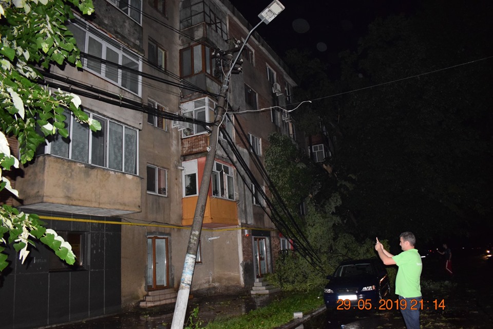 Au fost smulse acoperisuri, copaci doborati, stalpi de electricitate din beton rupti in doua, fire de electricitate cazute la pamant, circulatie blocata pe drumul National DN54 si DN 54 A, si pe alte strazi din oras.